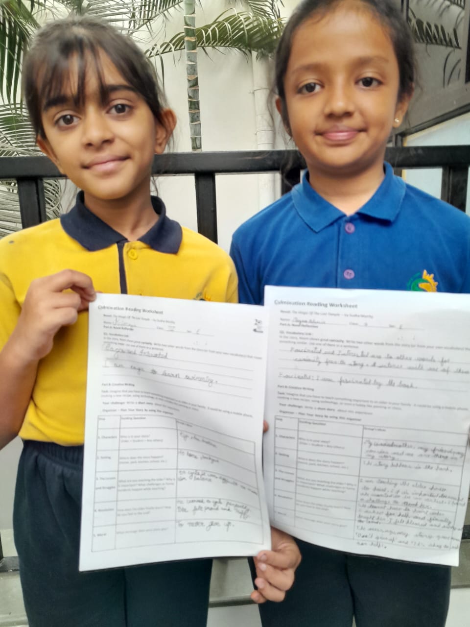 The students explored two captivating works by renowned author Sudha Murthy: The Magic of the Lost Temple (Grade IV) and How I Taught My Grandmother to Read (Grade V). Students attempted a fun-filled Short Story Writing exercise, which encouraged students to apply their imagination and newly learned vocabulary in crafting their own stories.