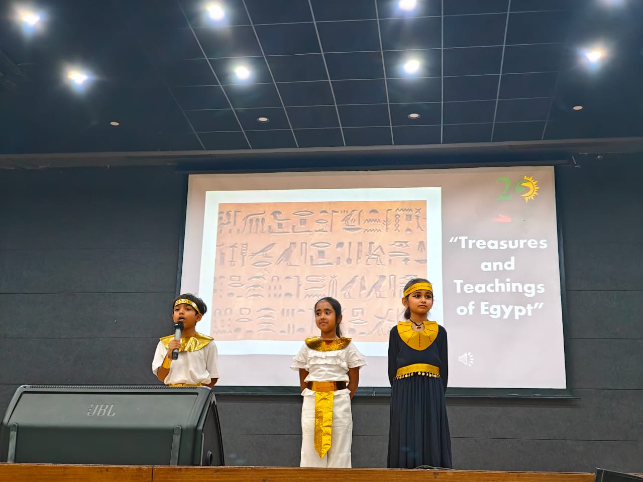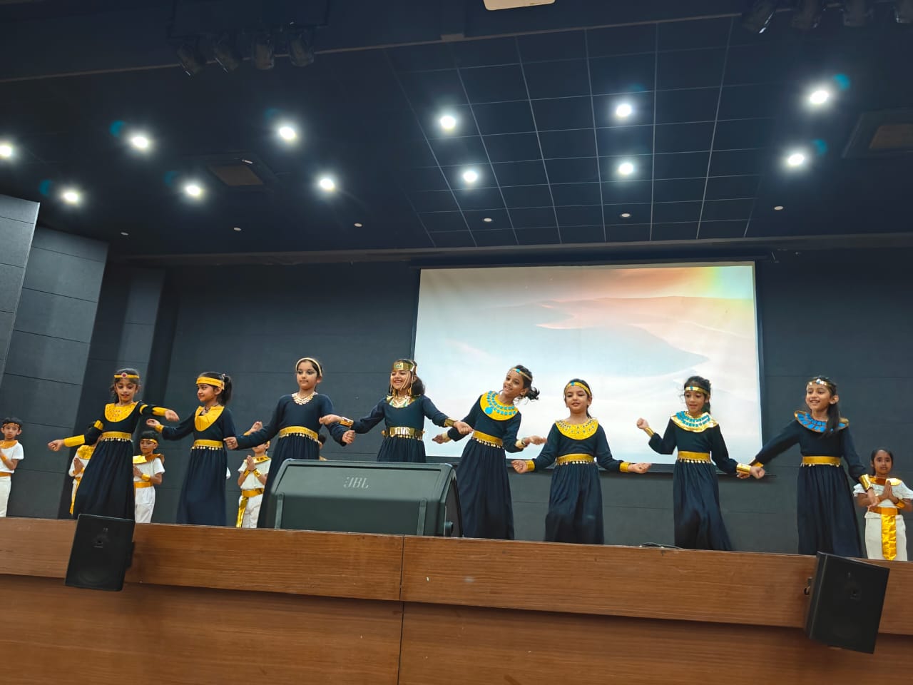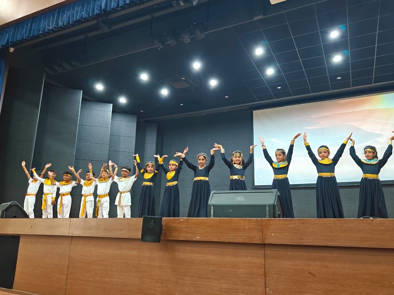 Grade IIC presented an engaging assembly on Egypt, highlighting its rich culture and history. Students spoke about the Nile River, the magnificent Pyramids, and the legendary Queen Cleopatra. The presentation reflected creativity and teamwork, featuring an energetic dance performance that brought ancient Egypt to life and left the audience truly mesmerized. The colourful costumes and props added grandeur to the show. It was a perfect blend of learning and fun, celebrating knowledge through art and expression. The theme of the assembly was a showcase of global perspective taken up by grade II students on Africa.