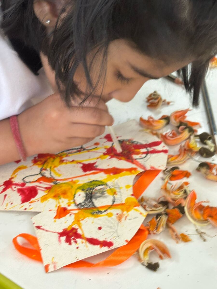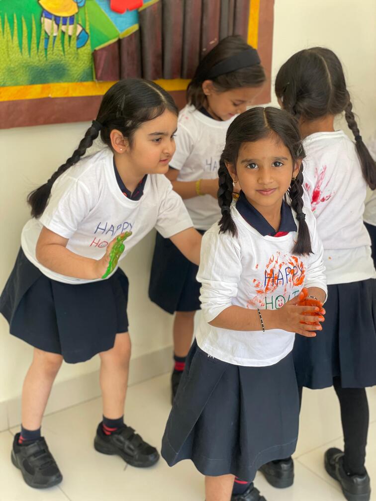 To encourage an eco-friendly celebration, children enthusiastically collected Tesu flowers and prepared organic colours, learning the importance of playing Holi safely and naturally. Their creativity shone as they crafted vibrant Holi greeting cards and added a personal touch to the festivities by doing hand painting on their T-shirts.
