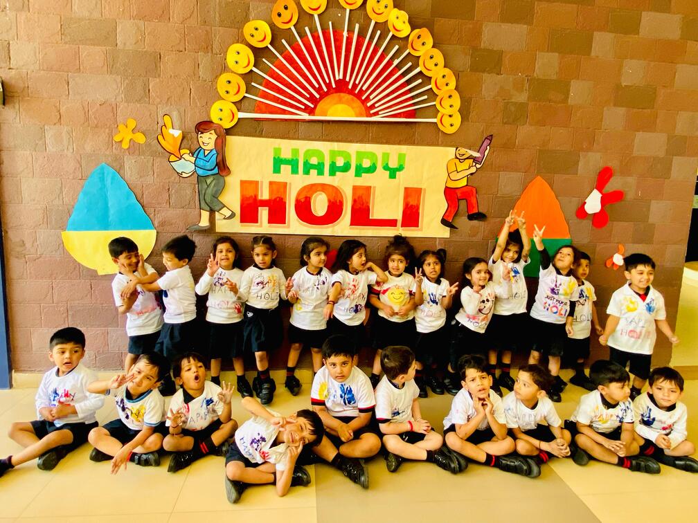 The festivities began with an interactive session, during which teachers engaged the children in a lively discussion about the significance of Holi. This was followed by a captivating story basket session, during which the story of Holika and Prahlad was beautifully narrated, bringing the essence of the festival to life.