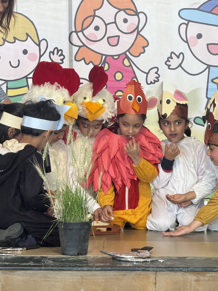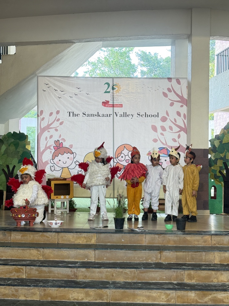 My Little Kaleidoscope came alive at Aadhar as the Special Assemblies began for the children of Aarambh and Neev I. Day one saw the confident little learners of Neev I step onto the stage, marking their first small steps before future big leaps. The children of Neev I C opened the morning assembly with a heartfelt greeting to the Earth, the Sun, and the elements of nature. The assembly began on a serene and positive note with a graceful Surya Namaskar performance, setting the tone for the day. Students enthusiastically showcased animal poses learned in school, reflecting focus and discipline. Expressive dialogues and confident stage presence followed, delighting the audience. The story The Little Red Hen conveyed the importance of sharing and cooperation. The assembly concluded with a melodious song and a joyful dance celebrating teamwork—leaving parents clapping and cheering with pride.