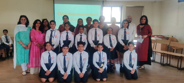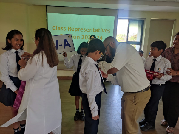 If your actions inspire others to dream more, learn more, do more and become more, you are a leader. The greatness of a leader is measured by the achievements of the led. The students in Grades IV and V have the option to lead their class as Class Representatives, which is truly inspired by the principle of Round Square, that is Leadership. Every student possesses the capacity for leadership. A student who helps the teacher with responsibilities including upholding discipline in the classroom and guiding the class through various activities is known as a Class Representative. They act as a role model for students. The teachers and class teacher of the relevant section make the nominations and selections. The representatives received badges during a special assembly. Students will receive instruction on how to manage the records for their class and provide comments to the Head of the Block during meetings. As a result, they gain exposure to how a student council operates.