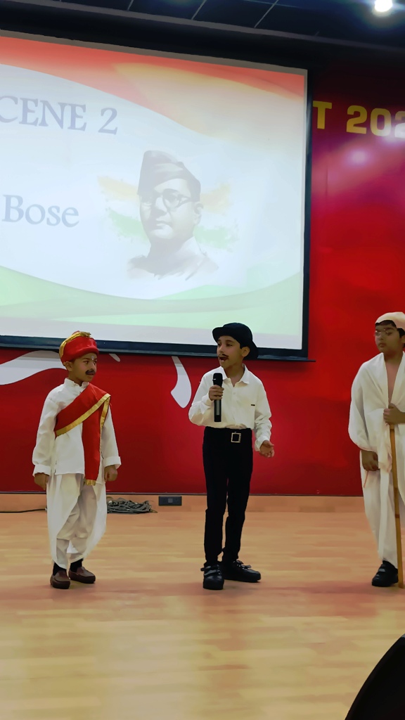Grade 4D presented an assembly on Independence Day, focusing on the importance of independence in the lives of today’s children. The skit began with students showing a casual attitude towards the day, reflecting how young minds often overlook its significance. As the performance progressed, they came across the voices of freedom fighters and stories of soldiers’ sacrifices, including those of their own grandparents.