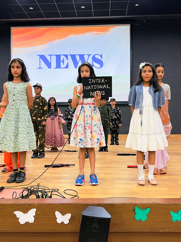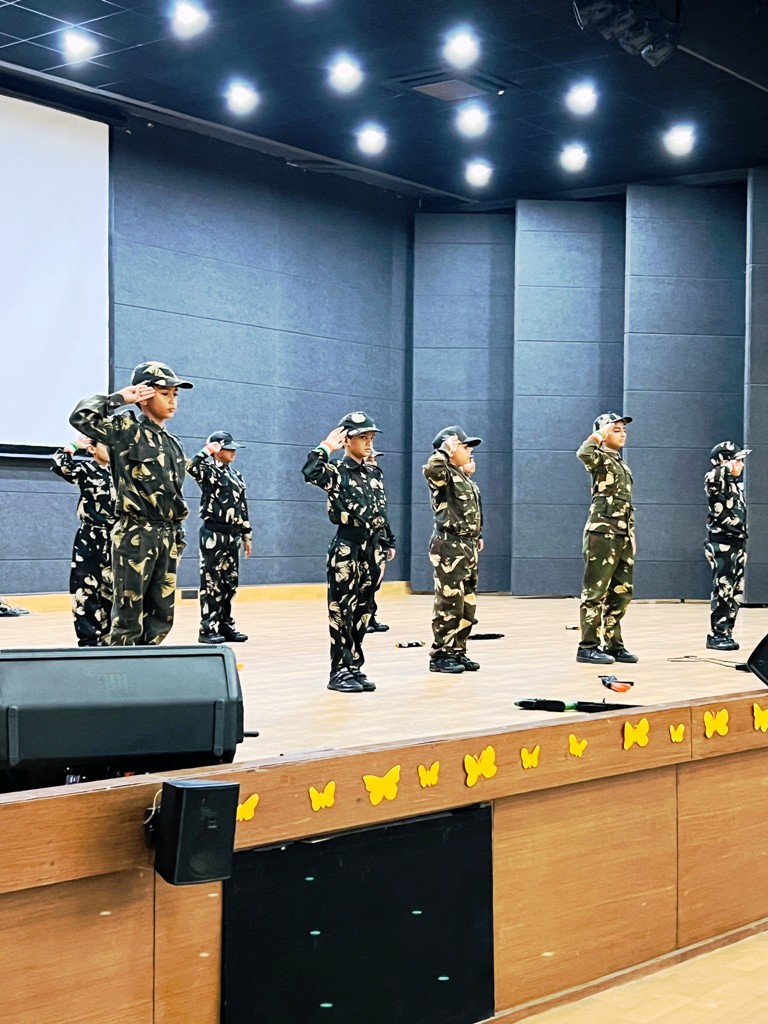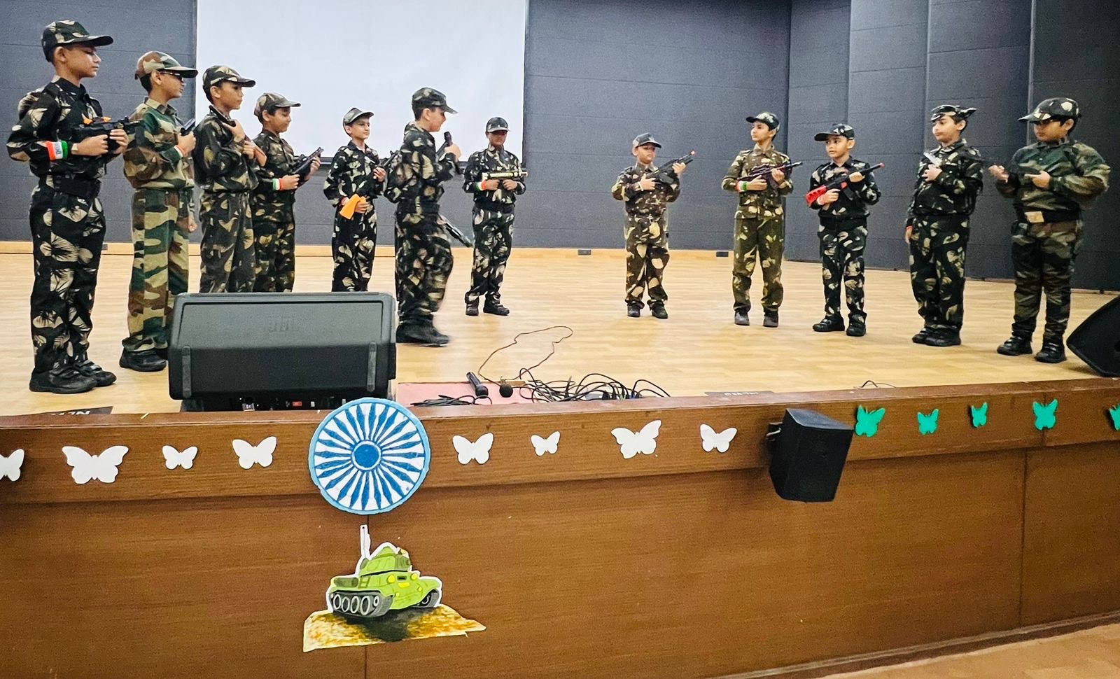 The assembly also featured few students dressed as the chiefs of the Indian Army, Navy, and Air Force, urging everyone to respect and support the defense forces. Role of women officers in defence forces was also depicted effortlessly. They reminded us of the immense sacrifices made by our soldiers. The assembly concluded with a prayer for global peace, understanding, and the well-being of our nation. It was a heart-touching and well-executed performance by the students.