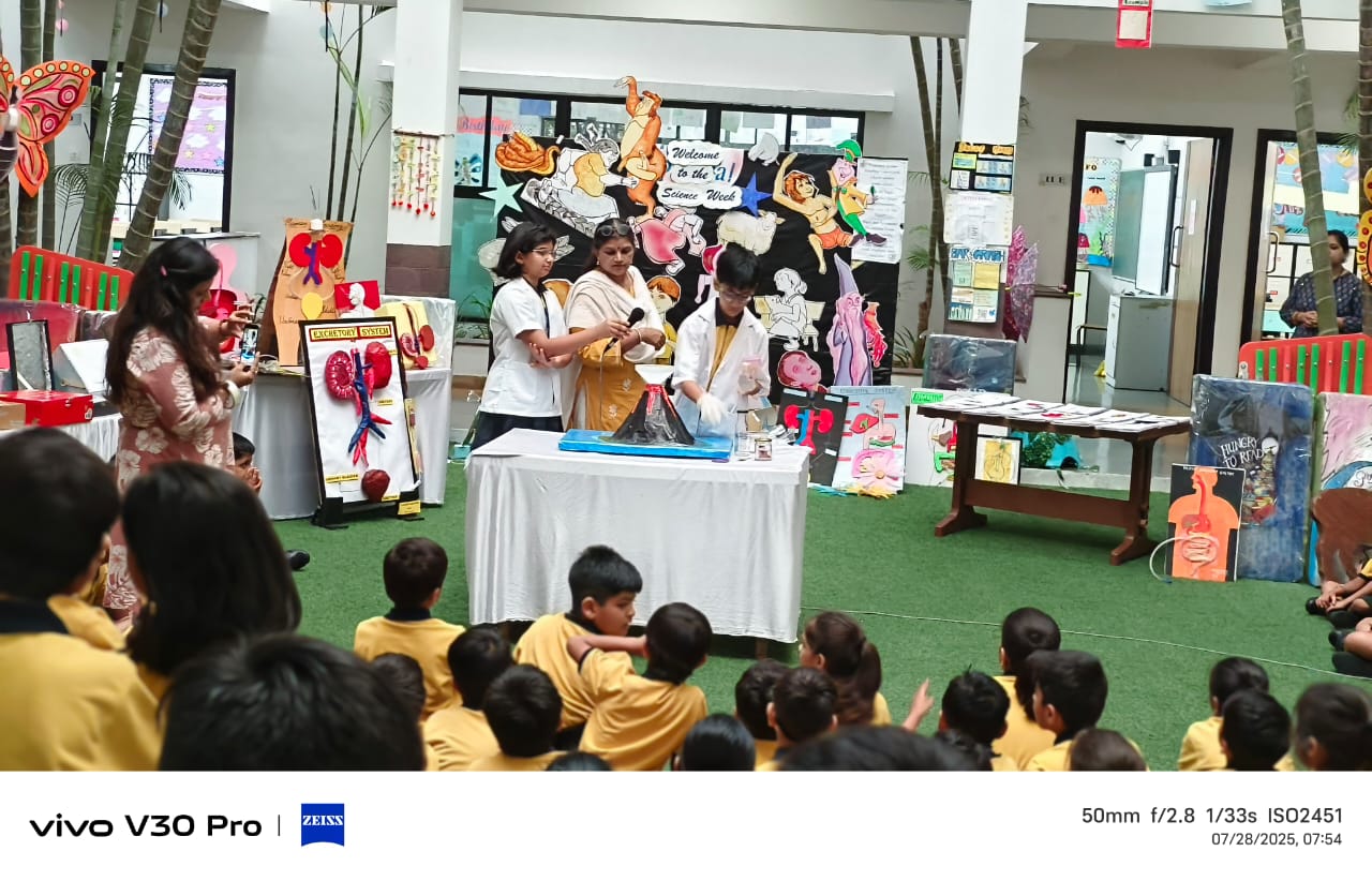 Science Week in Prangan was a fun and enriching experience for all. A spectacular volcanic eruption experiment kicked off the celebrations, showcasing the magic of chemical reactions and sparking curiosity among the audience. Each day, an exciting ‘Fact of the Day’ was shared with the students, sparking their interest and enthusiasm. The following day featured engaging role plays—Grade 2 showcased Sense Organs, Grade 3 Internal Organs, Grade 4 the Digestive System, and Grade 5 the Skeletal System—highlighted by a fun-filled Skeletal Dance. The week concluded with a thrilling Science Quiz for Grades 4 and 5, while Grade 2 enjoyed an EVS Quiz within their classrooms. The celebration successfully blended learning with creativity, leaving students inspired to explore science further.
