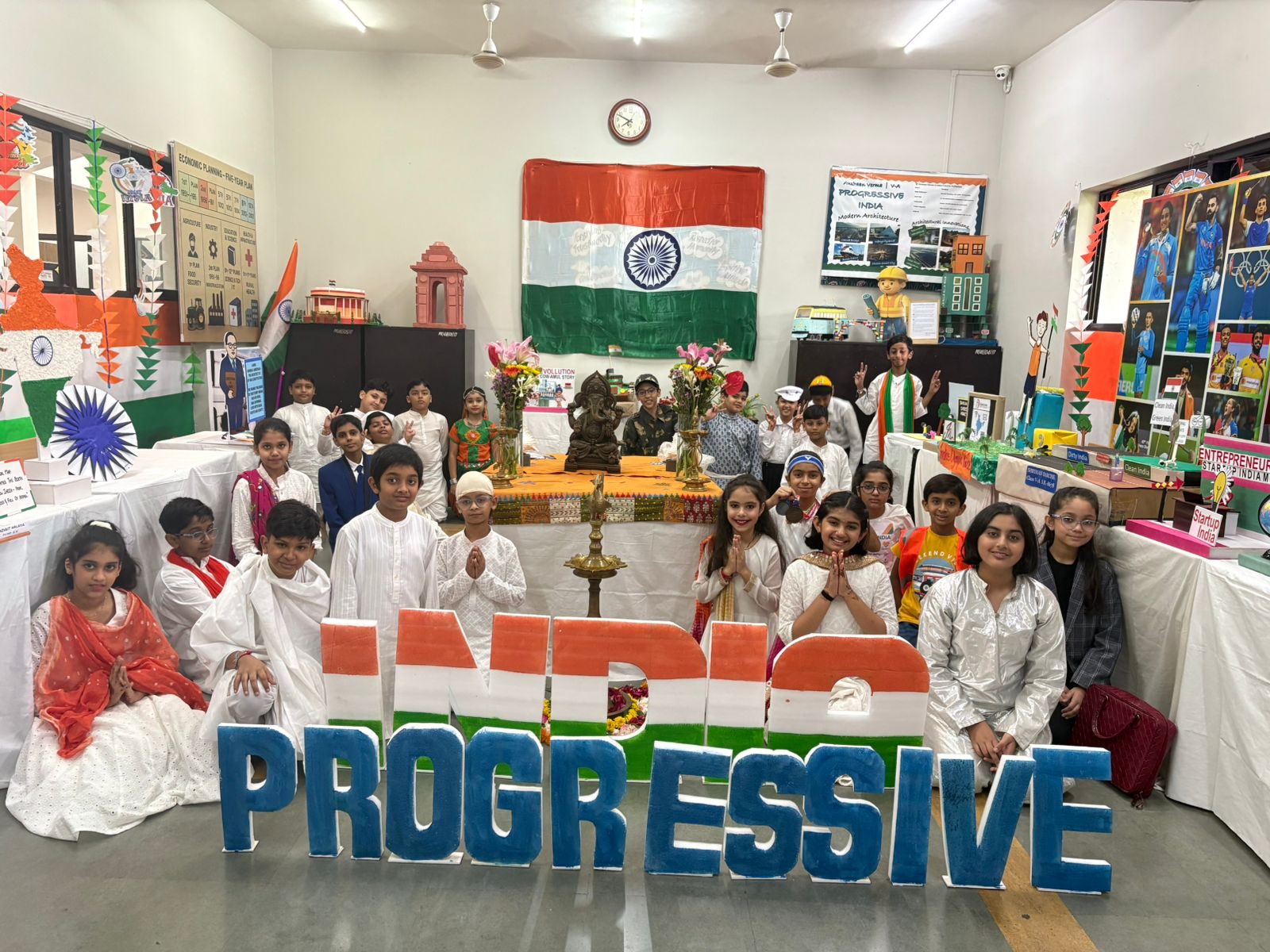 Grade 5 took a unique approach by exploring important national themes such as mountains, flora and fauna, Indian culture, defence forces, healthcare, artificial intelligence, and more — highlighting crucial aspects that shape and safeguard our nation. Their creative exhibits added depth and perspective to the celebration.