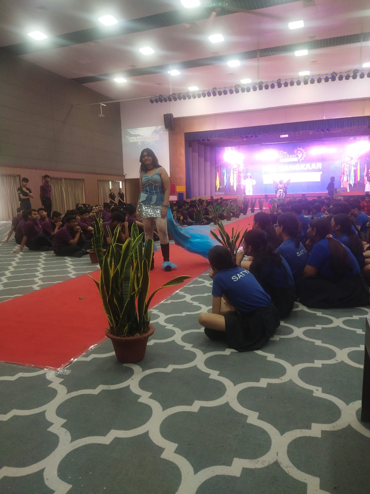Students from all four houses—Pragyan, Pravir, Satya, and Udyam—participated with tremendous enthusiasm and ingenuity. Each house created an imaginative kingdom and crafted stunning costumes using upcycled materials like plastic, jute, ropes, cardboard, and fabric scraps. These designs reflected not only artistic flair but also a deep understanding of environmental issues. Pragyan House presented Kingdom Elementara, inspired by the harmony of earth, air, fire, and water, and was declared the winner. Pravir House secured the first runner-up position with their icy Kingdom of Glacium, representing the fragile beauty of the polar regions. Satya House introduced Ouranos, a celestial realm promoting air purity and unity, while Udyam House, the second runner-up, showcased Threads of the Tide, a marine-themed kingdom drawing attention to ocean conservation and plastic pollution.