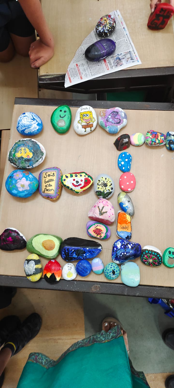 Grade 5 students got an opportunity to express their creativity and artistic skills on the natural resource – stones. These stones became their canvas for painting. With brushes in hand and colours ready, the young artists transformed ordinary stones into vibrant works of art.