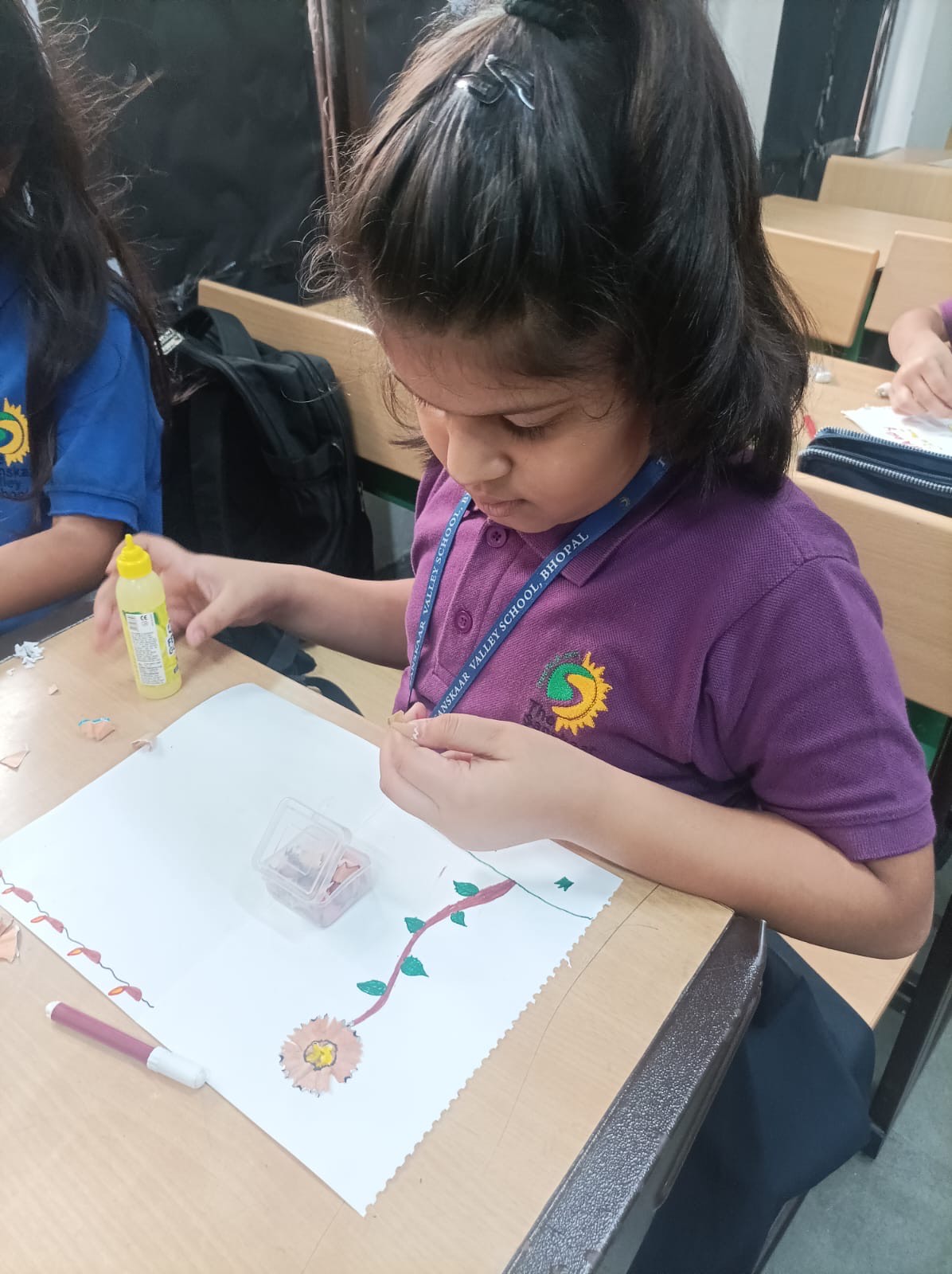 Held on Friday, October 3, 2025, the activity encouraged students to let their imagination bloom and transform simple shavings into flowers, patterns, and vibrant designs. What would normally be thrown away became the centerpiece of colorful artworks, reflecting both innovation and artistic expression.