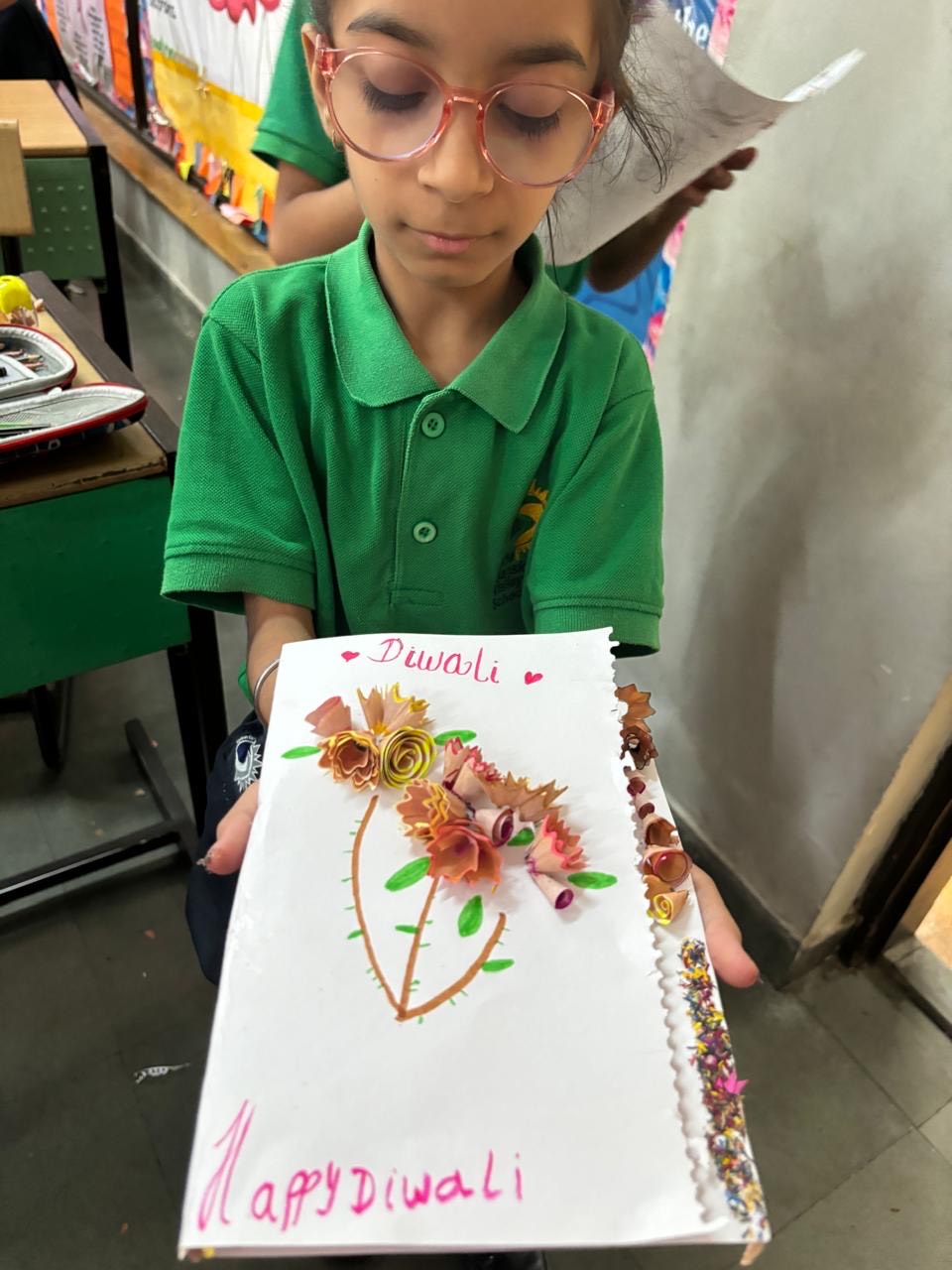Students of Grades 2 and 3 recently participated in a unique eco-art activity that gave them an opportunity to ideate as they could empathize with beautiful pencil shavings landing in the dustbin. The Design Thinking challenge invited our young eco-artists to reimagine pencil shavings into beautiful and creative greeting cards.