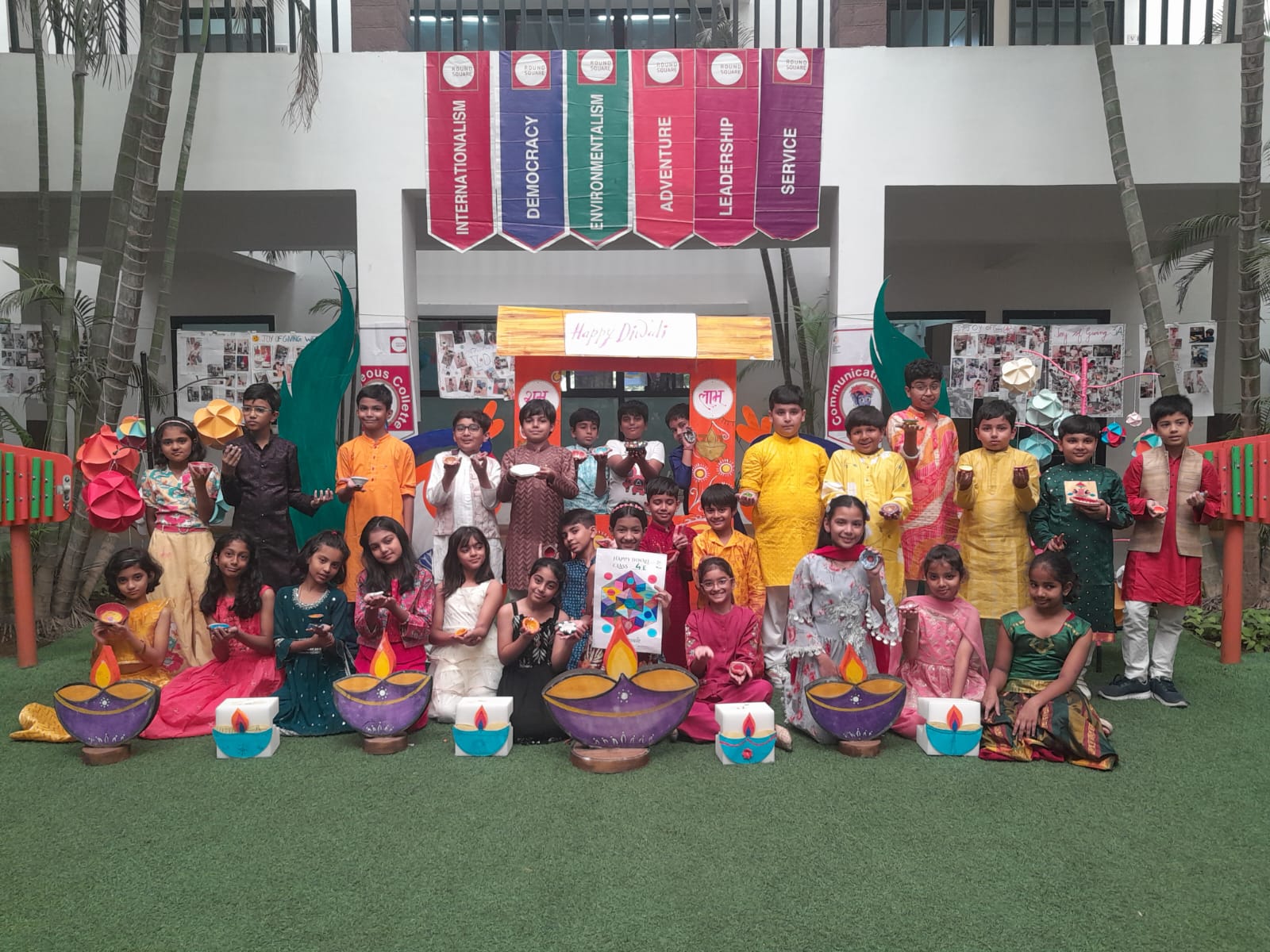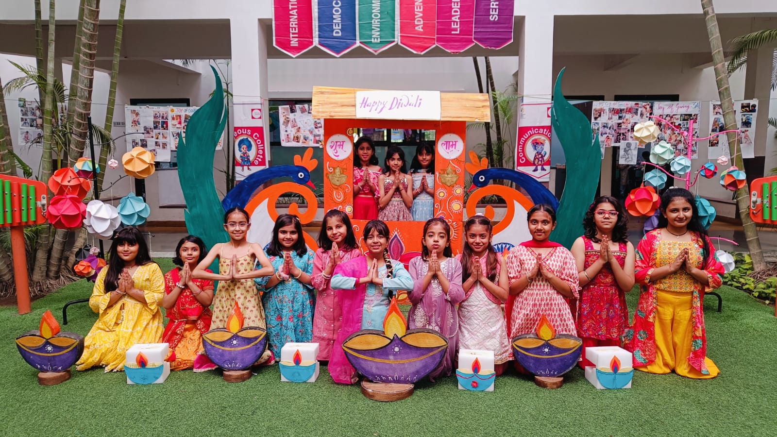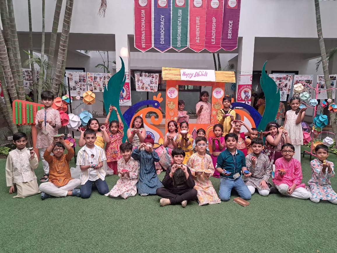The entire day radiated joy, colour, and festive cheer. Dressed in traditional attire, students shared laughter, warmth, and the true spirit of Diwali. The celebration not only brought smiles to young faces but also reinforced the values of unity, sustainability, and cultural pride.