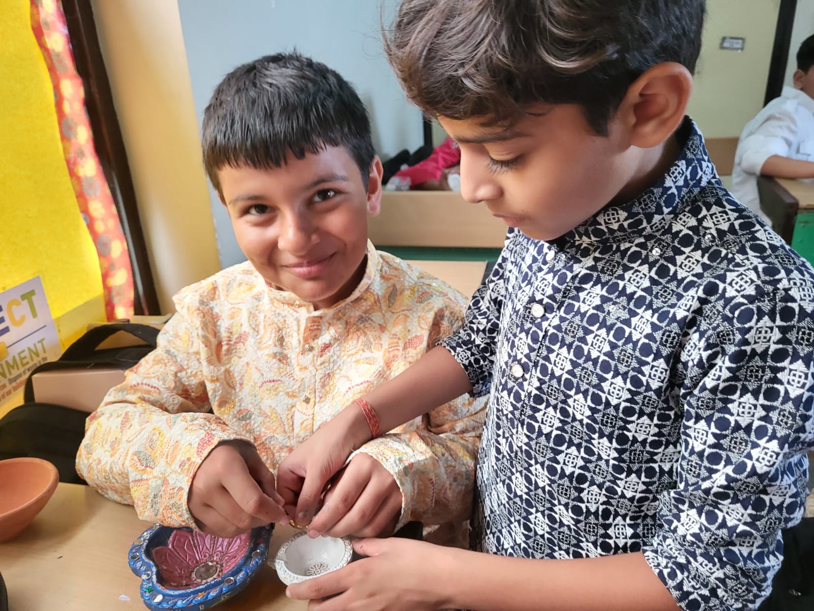 This was followed by a Diwali presentation shown in classrooms, after which students enthusiastically participated in a Diya Decoration Activity. They creatively adorned their painted earthen diyas with glitter, beads, and stickers. Each child proudly carried home their decorated diya — a radiant symbol of light, positivity, and festive joy.