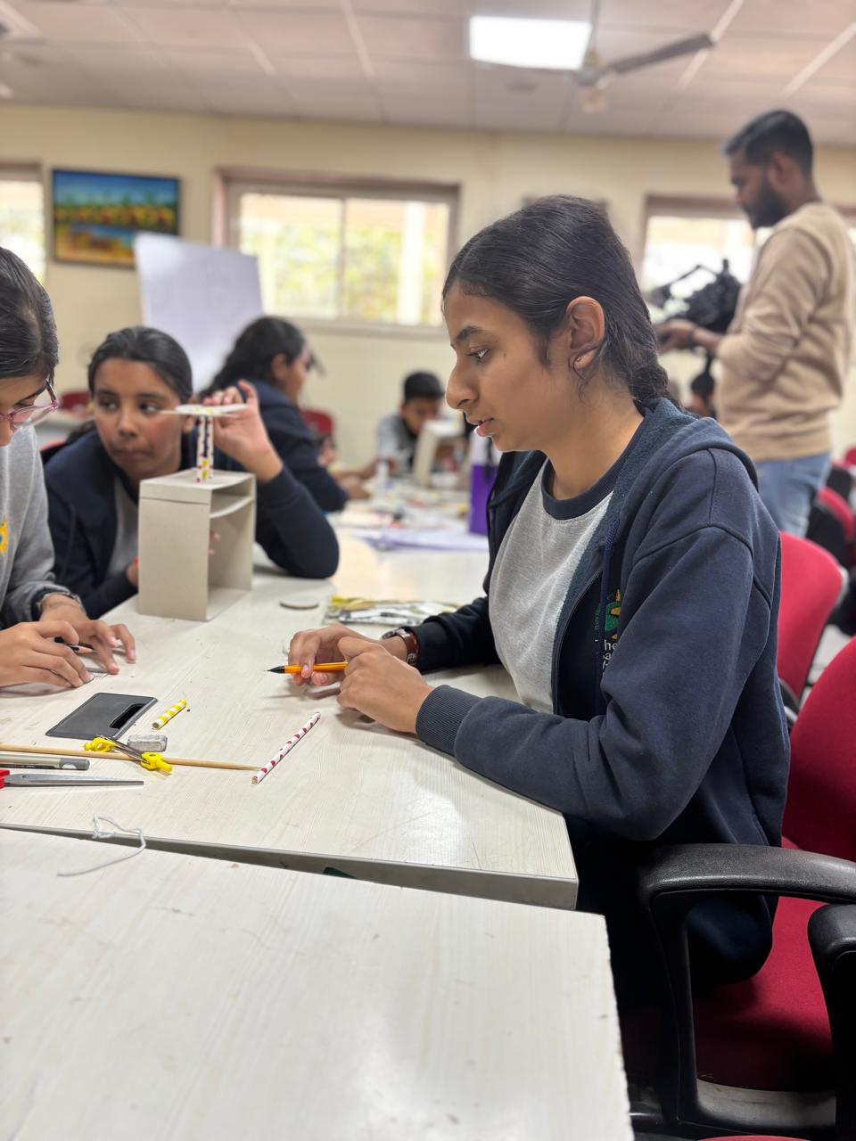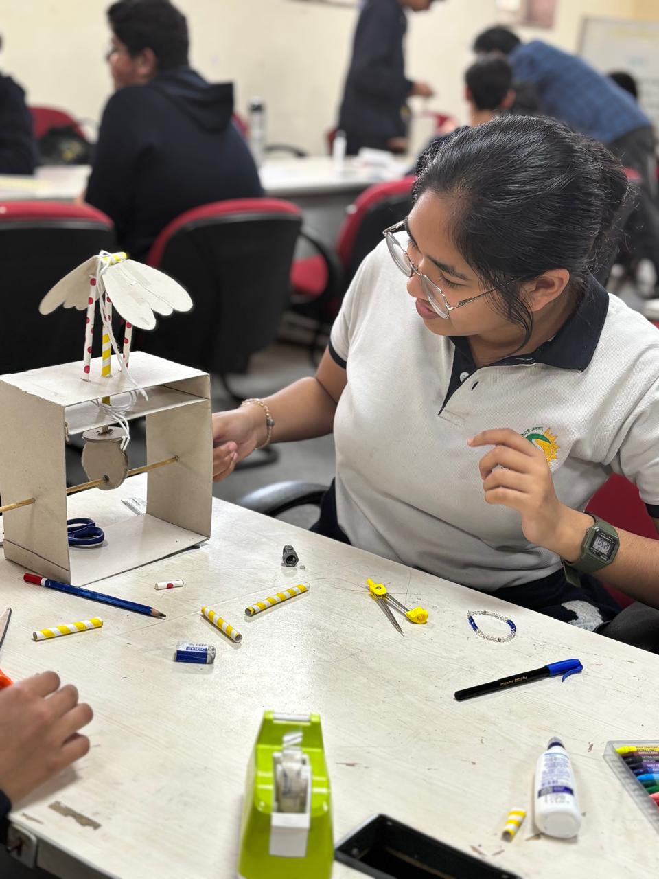 Thirty-four of our students participated in an inspiring, day-long Design Thinking Workshop on Friday, 12th December 2025, at the Regional Institute of Education (RIE), a unit of NCERT. They were actively engaged in immersive, hands-on learning by designing and building an Automata Butterfly and an Equatorial Sundial. Students also explored STEAM Park and interacted with professors and subject experts, gaining valuable insights into innovation and scientific thinking.