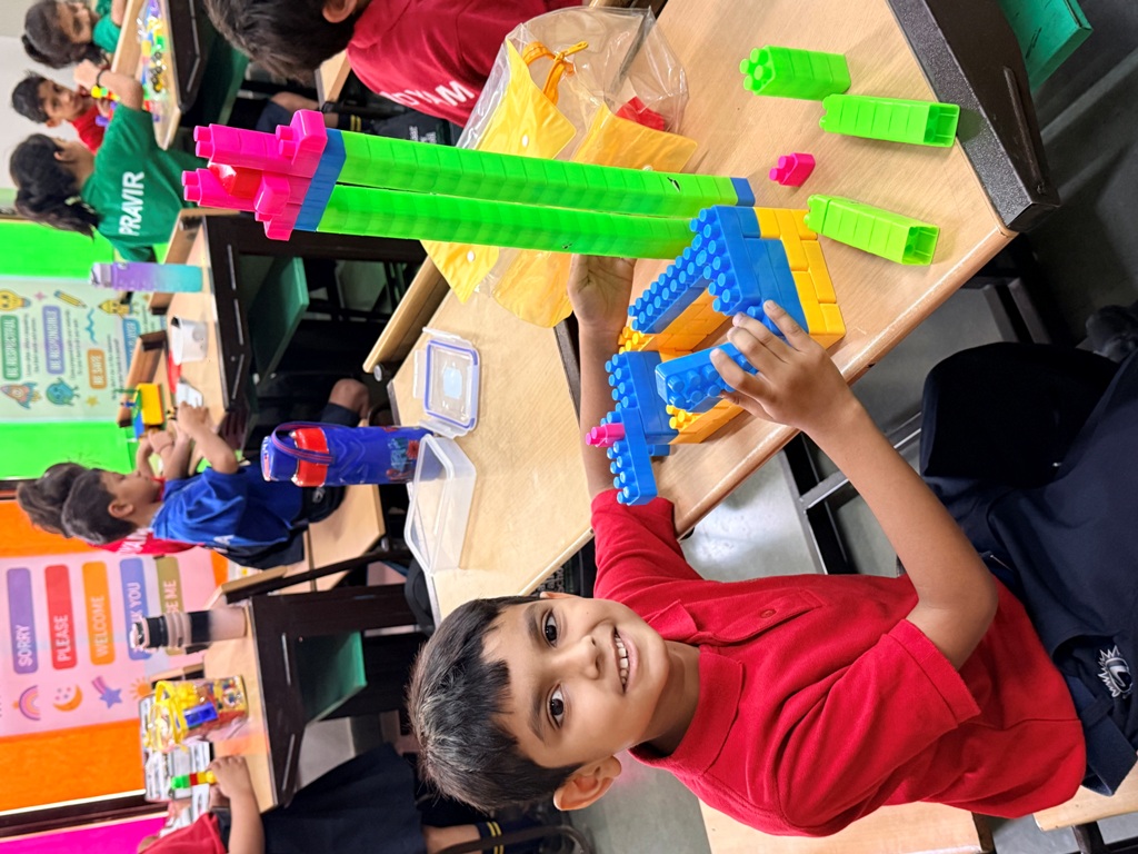 Grade 2 students showcased their creativity by building unique structures using LEGO/building blocks, bringing their imaginative ideas to life.