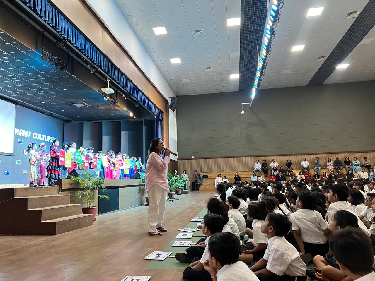 The assembly culminated with the uplifting song “Together We Can Change the World,” reinforcing the message of collective effort and optimism. It concluded on a note of gratitude, with students extending their sincere thanks to the parents, teachers, and all those whose support made the presentation truly memorable.