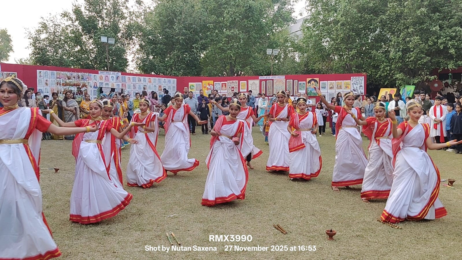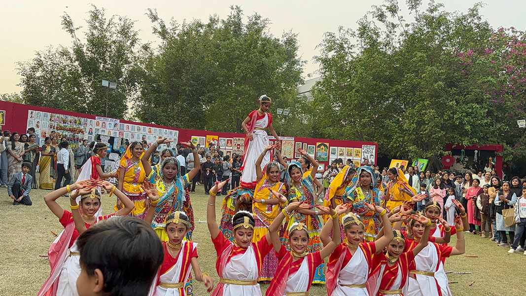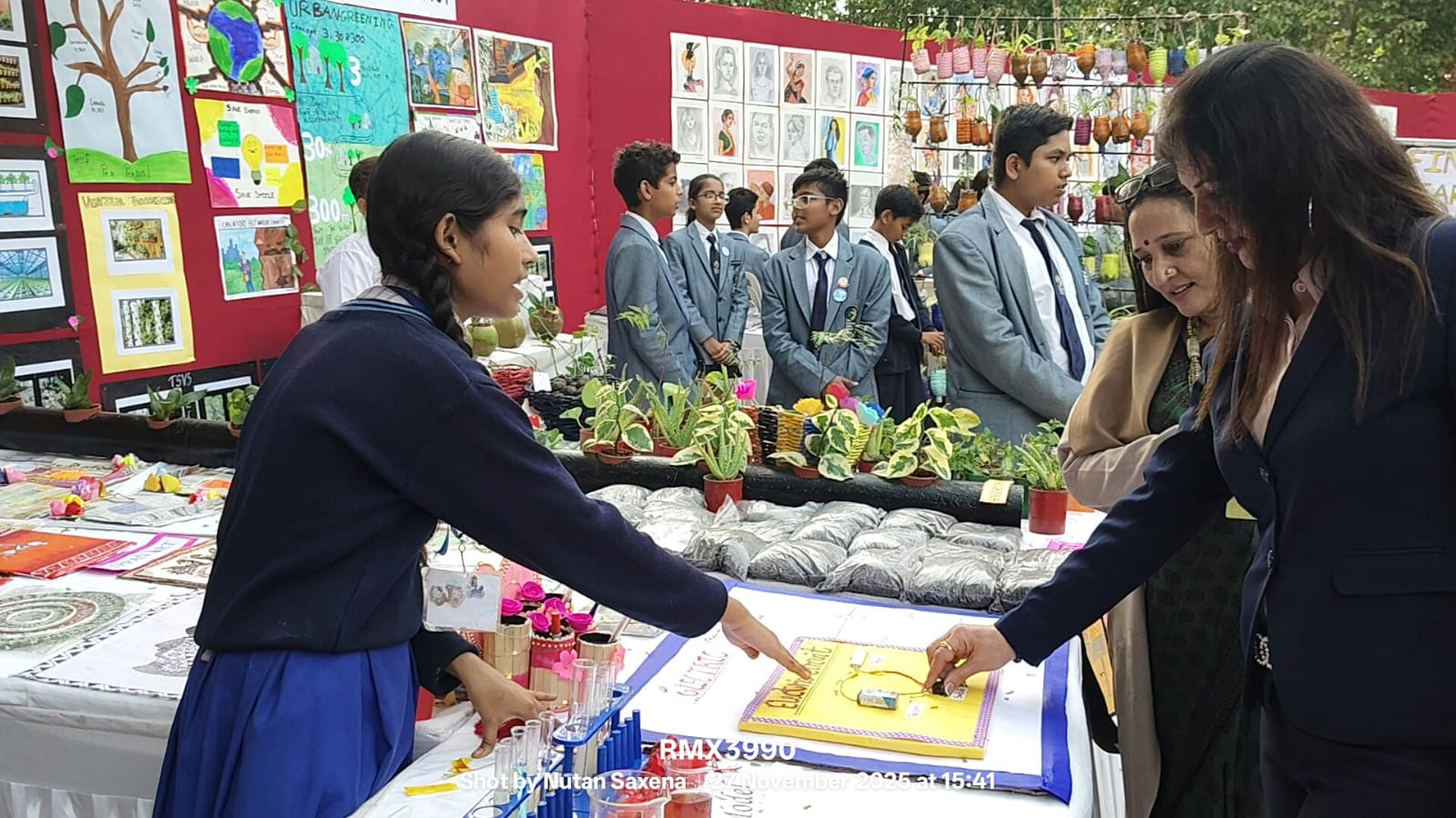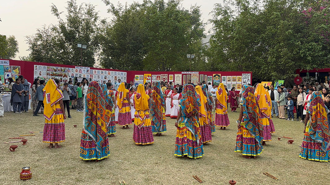 A colourful folk-dance presentation by the students added vibrancy to the event and drew huge applause from the audience. The performance highlighted the cultural richness and confidence of the girls. Our Director Ma’am also visited the stall and appreciated the hard work put in by the students and teachers, acknowledging their dedication and commitment.