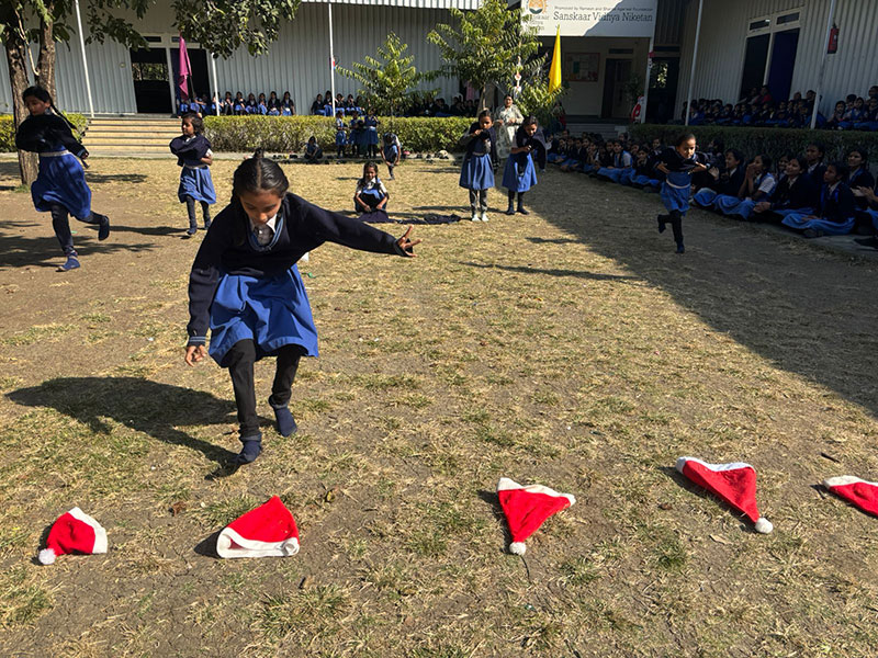 Sanskaar Vidya Niketan celebrated Christmas and Sports Day in a joyful and festive spirit. The day began with classroom discussions on the significance of Christmas, followed by a lively assembly presentation by the students of Grade 2. The atmosphere was filled with cheer as children participated in carol singing.